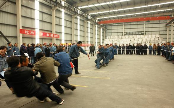 經(jīng)過賽前的精心準(zhǔn)備和熱身訓(xùn)練,隊(duì)員為集體爭取榮譽(yù),賽出了亮點(diǎn)。拔河比賽是考驗(yàn)一個(gè)團(tuán)隊(duì)凝聚力、合作精神以及組織紀(jì)律性的最好時(shí)機(jī),賽場外不時(shí)爆發(fā)出陣陣熱烈的加油助威聲,場上隊(duì)員鼓足了勁兒,連平時(shí)優(yōu)雅秀麗的女士們此時(shí)也變成了大力士。最后,經(jīng)過激烈的淘汰賽,長春炭素有限公司、電解一車間、電解二車間、鑄造車間隊(duì)進(jìn)入了最后的決賽。在比賽中,不少隊(duì)員的手磨破了皮,但卻沒有人在意,正是這頑強(qiáng)拼搏的精神鑄就了我們物產(chǎn)北川工業(yè)園區(qū)蓬勃向上的生命力。
