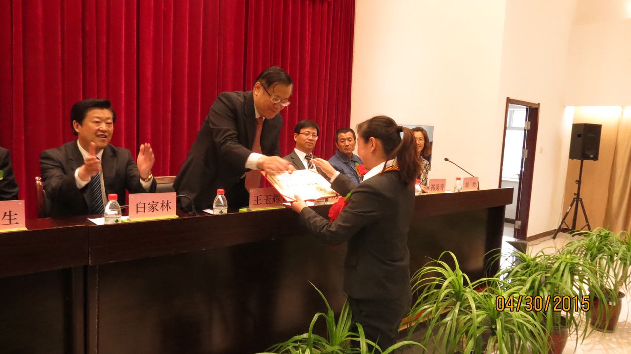 集團總經(jīng)理王玉輝首先為榮獲"全國五一巾幗標兵"榮譽稱號的青海物產(chǎn)汽車貿易有限公司銷售總監(jiān)劉少俠頒發(fā)了榮譽證書。