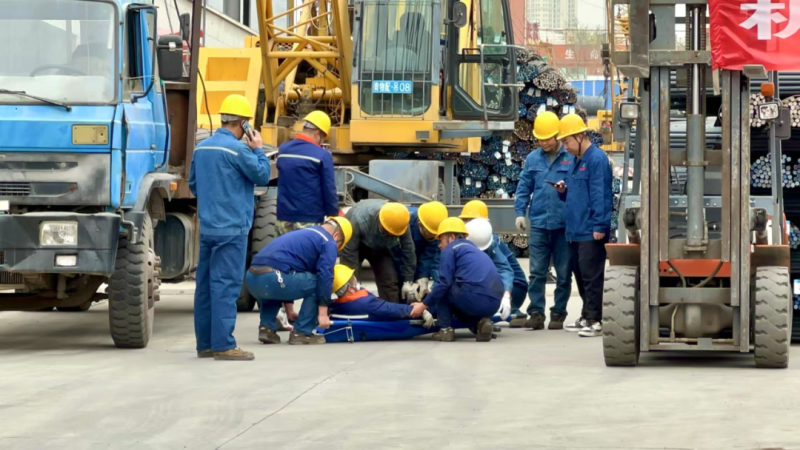 本次演練模擬鋼板區(qū)在進(jìn)行吊裝作業(yè)時(shí)突發(fā)輪胎起重機(jī)吊裝貨物擺幅過大傷人事故。演練前期,制定了詳細(xì)方案并組織培訓(xùn),籌備救援、醫(yī)療等物資,布置模擬場景。演練啟動后,通訊聯(lián)絡(luò)組迅速傳遞事故信息,現(xiàn)場指揮組即刻啟動應(yīng)急響應(yīng)。警戒疏散組快速隔離現(xiàn)場、疏散人員;應(yīng)急救援組解救受傷人員、排除設(shè)備故障;醫(yī)療救護(hù)組對傷員緊急救治并送醫(yī);后勤保障組及時(shí)供應(yīng)物資,各環(huán)節(jié)有序推進(jìn)。