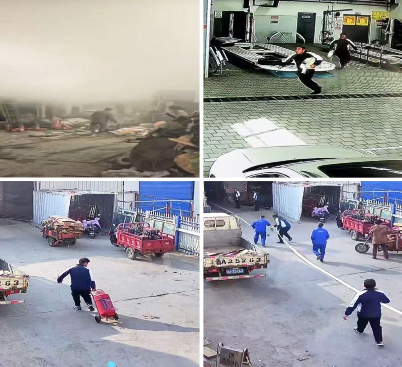 1月4日下午,一場(chǎng)突如其來的火情打破了午后的平靜。汽貿(mào)公司相鄰廢品回收站內(nèi)堆積的紙制品、塑料等易燃物被引燃,瞬間濃煙四起,火勢(shì)蔓延極快,現(xiàn)場(chǎng)形勢(shì)十分危急。緊要關(guān)頭,汽貿(mào)公司職工迅速行動(dòng),第一時(shí)間奔赴火災(zāi)現(xiàn)場(chǎng)。撲救中,大家迅速依據(jù)火情制定了應(yīng)急預(yù)案,之后分組開展救援。一組人員迅速將七八根消防水管連接妥當(dāng),接引水源沖向火場(chǎng);二組人員攜大型滅火器,冒著濃煙,義無反顧的壓制火勢(shì);剩余人員快速疏散周邊群眾,并仔細(xì)排查現(xiàn)場(chǎng)滯留人員。