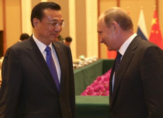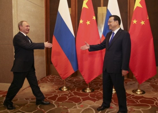 李克強(qiáng)總理會見俄羅斯總統(tǒng)普京時(shí)說:"中俄兩國是戰(zhàn)略伙伴,互為最大鄰國。共同維護(hù)二戰(zhàn)勝利成果,反對歪曲篡改二戰(zhàn)歷史,這是我們的共識,也是對世界正義的伸張。"