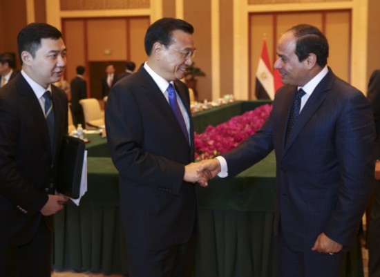 李克強(qiáng)總理會見埃及總統(tǒng)塞西,就對方希望"加強(qiáng)反恐合作"提議表示:"我們既要加強(qiáng)反恐合作,也要妥善解決熱點(diǎn)問題,更要高度重視發(fā)展經(jīng)濟(jì),以鏟除恐怖主義傳播的土壤。"
