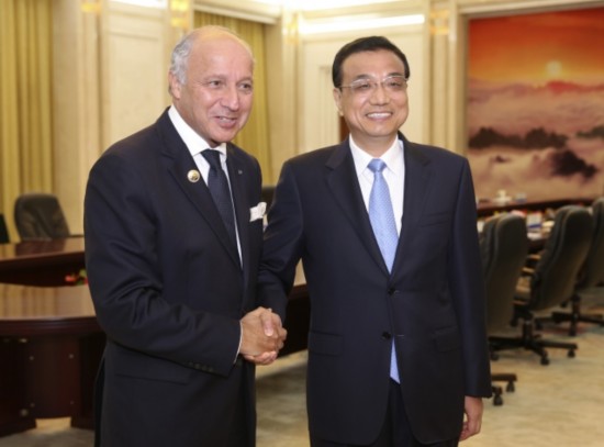 李克強(qiáng)總理會見法國外長法比尤斯時(shí)說:"希望把中法第三方合作和核能合作做成'南北合作'的示范項(xiàng)目,做成推動(dòng)世界經(jīng)濟(jì)向復(fù)蘇方向前行的引導(dǎo)性項(xiàng)目。"
