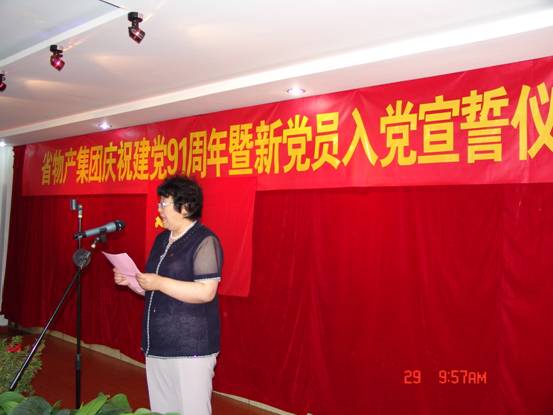 我宣誓:"我志愿加入中國共產(chǎn)黨,擁護(hù)黨的綱領(lǐng),遵守黨的章程,履行黨員義務(wù),執(zhí)行黨的決定,嚴(yán)守黨的紀(jì)律,保守黨的秘密,對黨忠誠,積極工作,為共產(chǎn)主義奮斗終身,隨時準(zhǔn)備為黨和人民犧牲一切,永不叛黨"。6月29日上午10∶00時,17名新加入黨組織的中國共產(chǎn)黨預(yù)備黨員、所屬各黨組織書記、老黨員代表等30余人的莊嚴(yán)宣誓,標(biāo)志著青海物產(chǎn)系統(tǒng)慶祝建黨91周年系列活動正式展開。